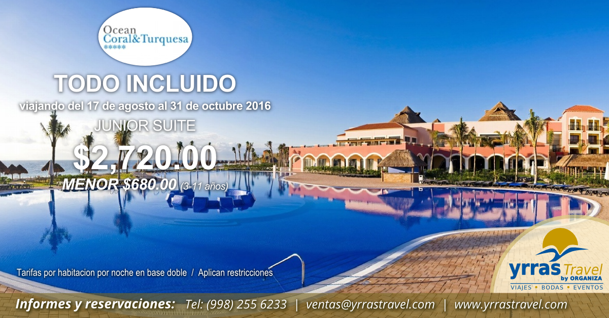 Ocean Coral and Turquesa - All Inclusive es una propiedad situada frente a una fascinante playa del Caribe Mexicano, en la Riviera Maya, que te ofrece un hospedaje de excelencia rodeado de lujos, comodidades y exclusivos servicios.