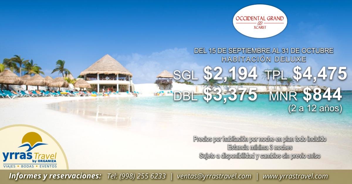 Siéntete en completa armonía al hospedarte en el Occidental Grand Xcaret All Inclusive Resort y disfruta sus impresionantes instalaciones y su programa de actividades a lo largo de tus vacaciones en la Riviera Maya.